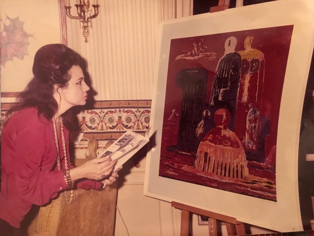 Benedetta Marinetti, pittrice futurista, moglie di F.T. Marinetti inventore del Movimento che iniziò a Parigi con la pubblicazione del manifesto futurista sul “Le Figarò” del 20 febbraio 1909. Nel 1949 ho conosciuto Benedetta Marinetti che dopo la scomparsa del marito nel 1944, risiedeva con le figlie Vittoria, Ala, Luce in un’antica casa liberty, in una traversa del Lungotevere Arnaldo da Brescia. Naturalmente l’appartamento era denso di importanti opere futuriste dipinti e sculture che per la maggior parte si trovano nei musei americani. Benedetta si è interessata della mia pittura e mi chiedeva di accompagnarla alle mostre. Abbiamo seguito insieme un corso di pittura giapponese all'”ISMEO” dove mio padre a quell’epoca presiedeva il settore riguardante il Ceylon. Benedetta diceva che i giapponesi avevano un’impostazione completamente diversa del disegno e della pittura, che addirittura “partiva dal gesto”, e questo la interessava essendo rimasta nell’animo sempre all’avanguardia.